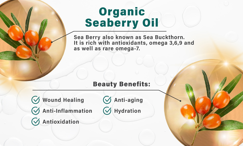 Lightweight moisturizer loaded with Ultra HA, Organic Seaberry Oil, Plant Collagen Extract & Rose Cell for moisturizing, anti-inflammation, and anti-aging effects.