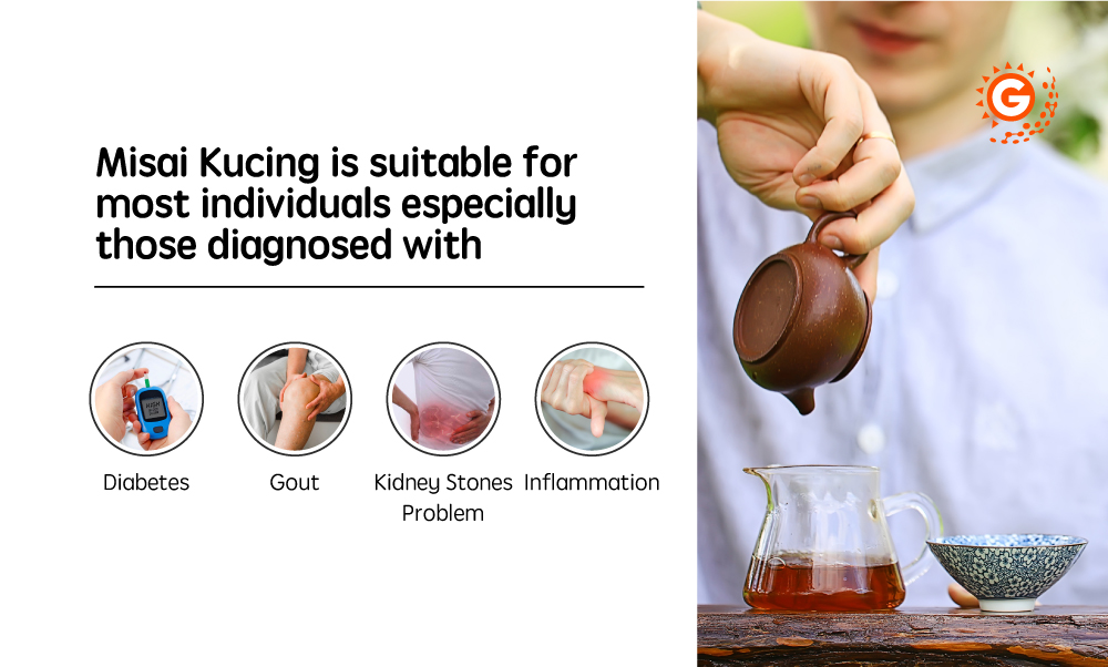 GoodMorning Misai Kucing Tea is free from additives, preservatives, and artificial colouring. Our herbal farm adheres to the Malaysian Good Agricultural Practice (MyGAP) guidelines set by the Ministry of Agriculture and Agro-Based Industry, ensuring the production of high-quality and safe agricultural products while maintaining a good social and environmental farming background.